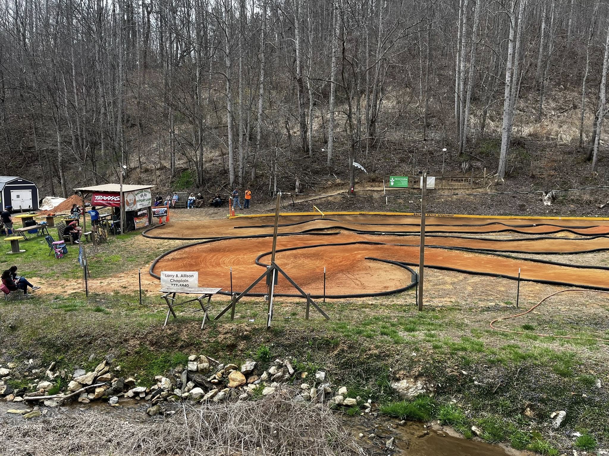 Backer Patch RC Park is set in the quiet countryside of Marshall, NC, on land that was once used for growing tobacco, giving it a unique blend of history and hobby. The open field setting provides plenty of space for the track, pit areas, and spectators, while the surrounding mountain landscape adds a scenic backdrop that makes race days feel relaxed and enjoyable. With lights for evening races and power hookups available, the track is set up to handle long days and late nights of racing.