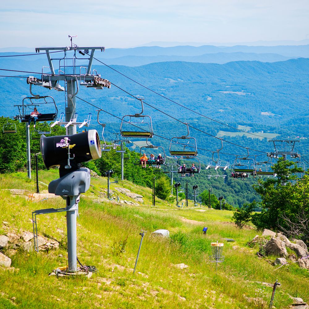 During the summer and fall, the resort runs scenic lift rides that carry guests up to 5,506 feet—the highest accessible summit east of the Rockies—for breathtaking panoramic views of the Blue Ridge Mountains