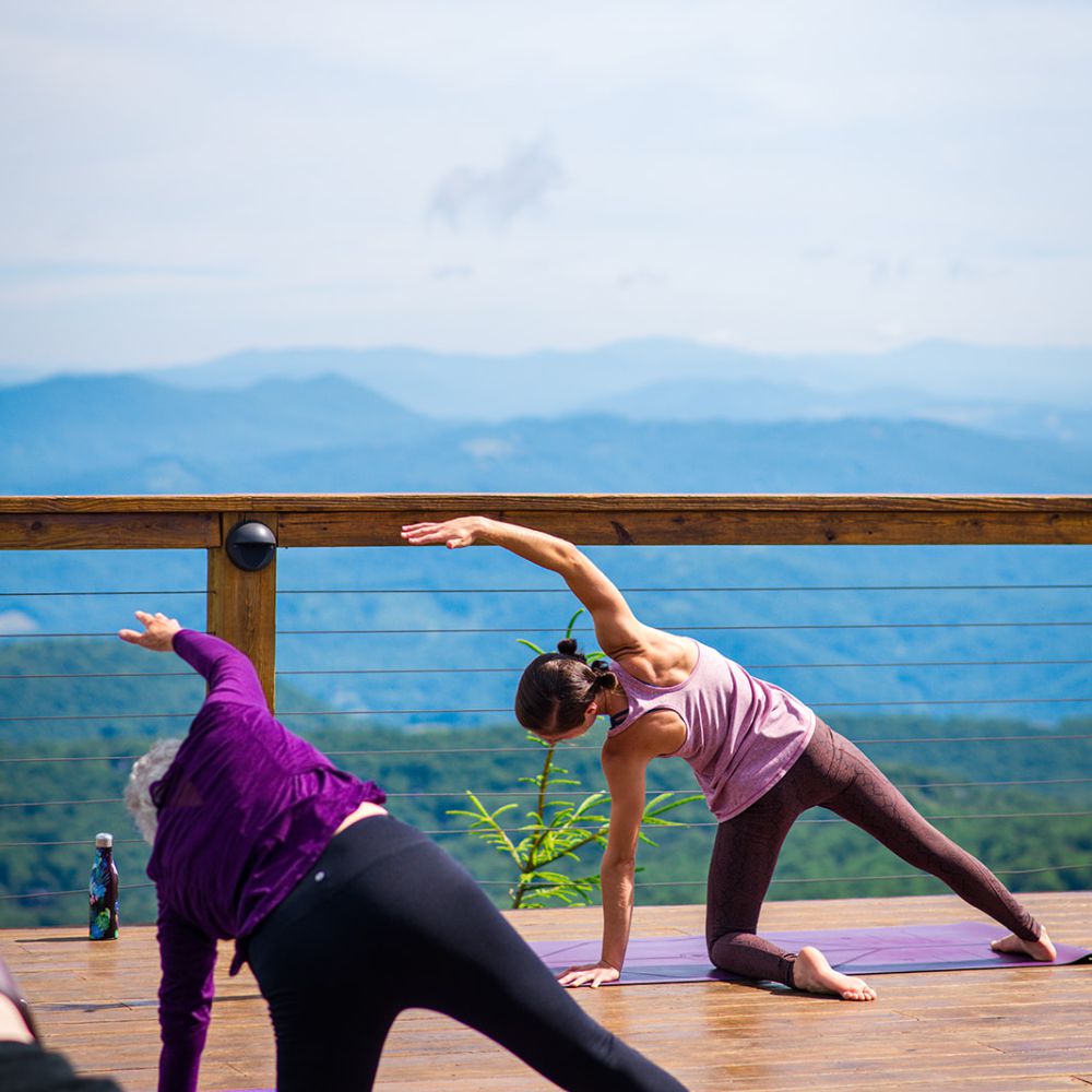 Outdoor yoga at Beech Mountain Resort offers more than just a workout; it's a full sensory experience perched at 5,506 feet atop the highest ski destination east of the Rockies.