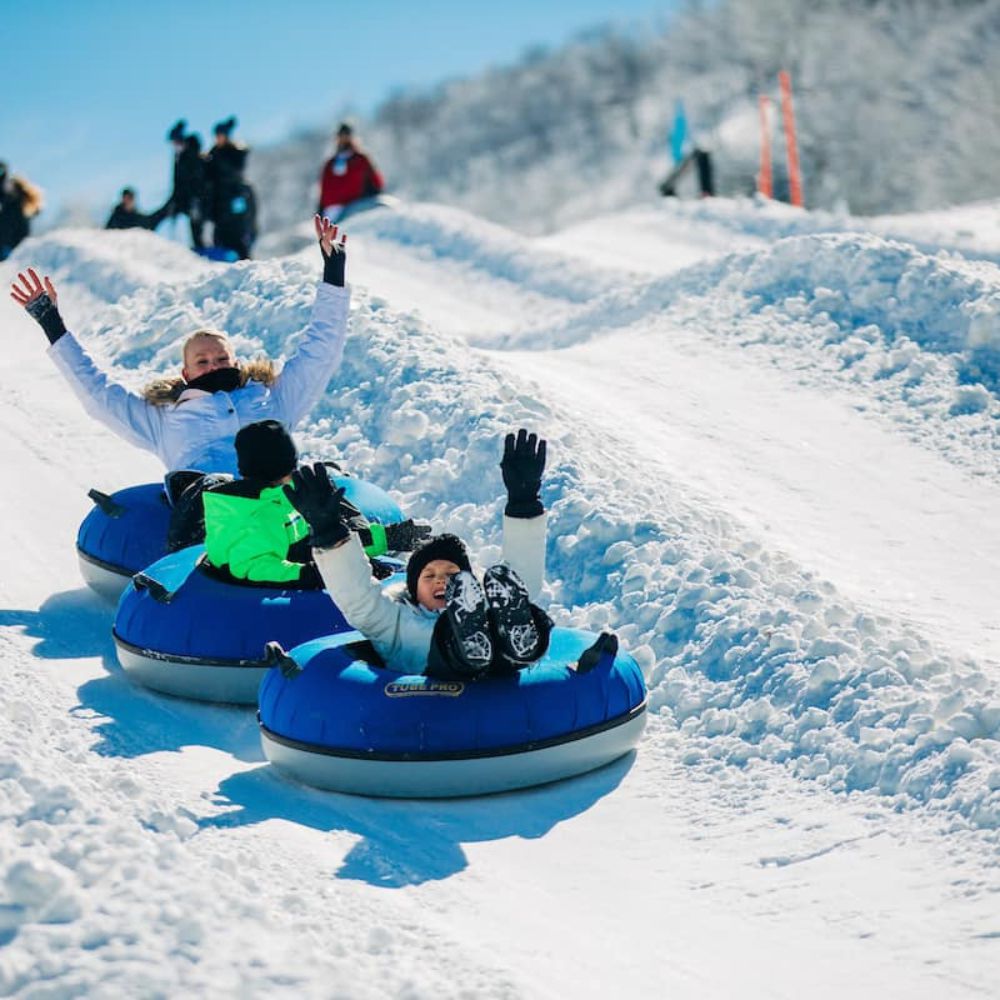 The resort’s dedicated tubing hill features 6–8 lanes, each stretching a generous 700 feet and flanked by high-powered snowmaking guns to ensure consistently slick, fast surfaces.
