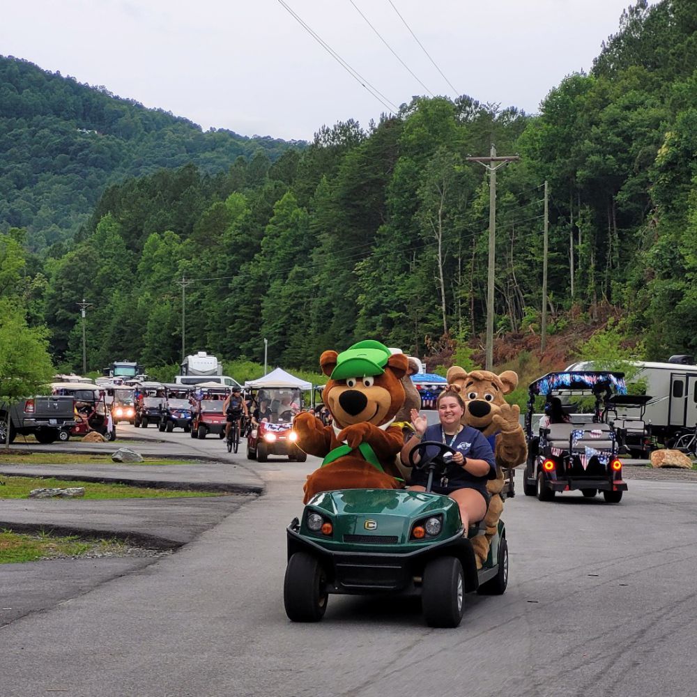 Jellystone Park Golden Valley in Bostic, NC, is a large family-friendly camp-resort set in the Blue Ridge Mountains. Conveniently located between Asheville and Charlotte—and also within reach of Hickory and Spartanburg—it offers a mountain getaway that’s close to several major cities. Guests can choose from cozy cabins, luxury glamping, RV sites, and tent camping, all surrounded by scenic views.