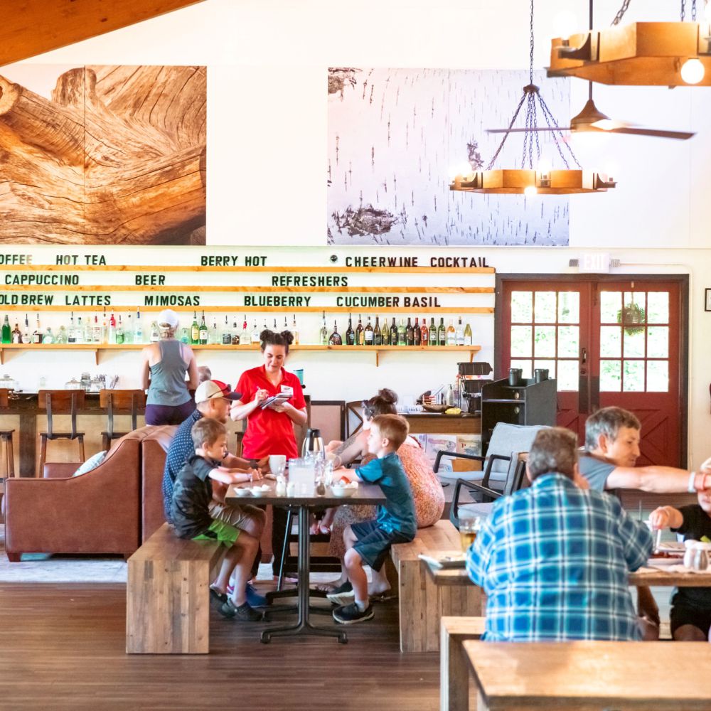Dining options include casual cafés, a tavern, and a lodge-style restaurant with mountain and lake views. The resort also offers a camp store, laundry facilities, golf cart rentals, and other conveniences to make a stay easy and enjoyable.