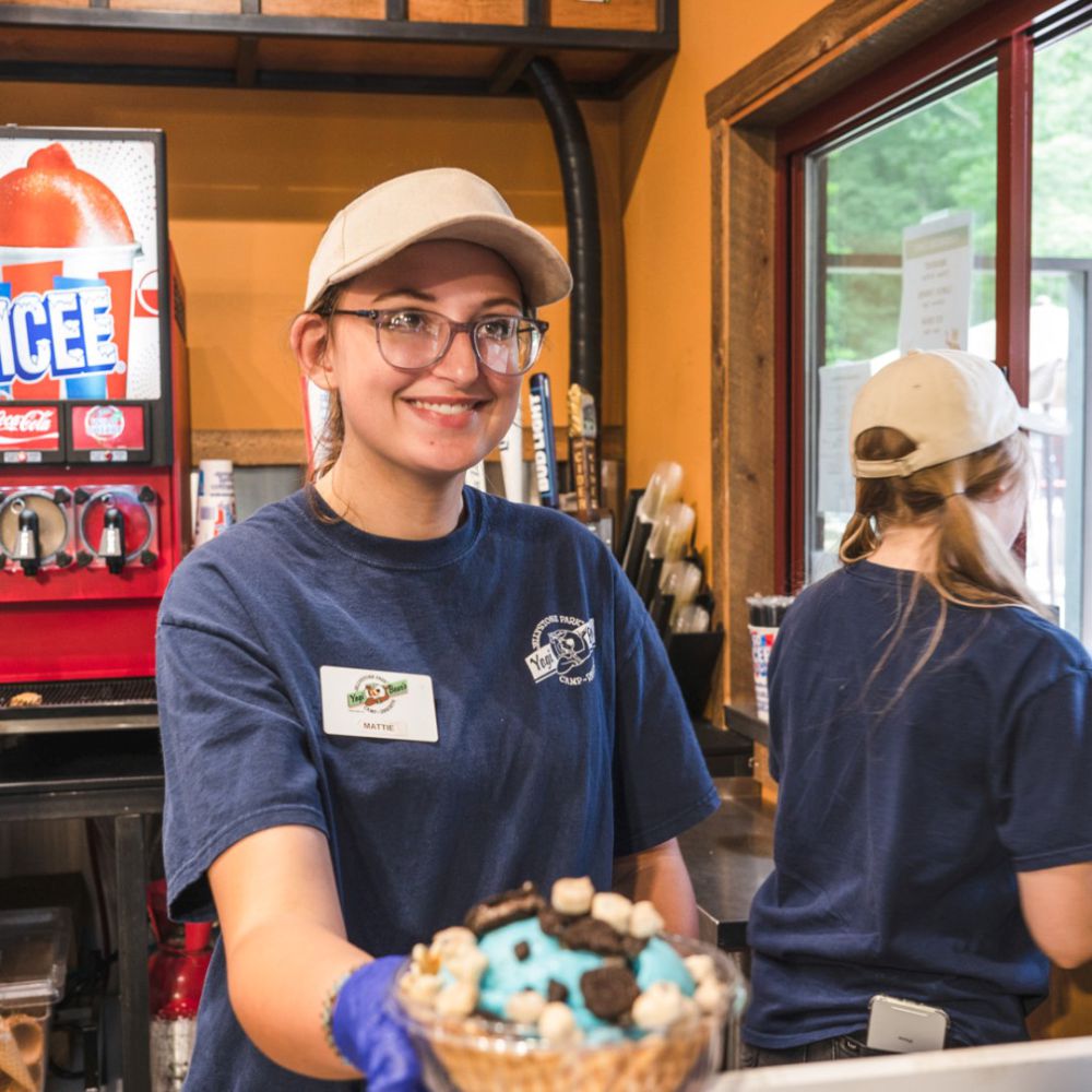 Jellystone Park offers on-site dining options that include full menu options, grill options, ice cream, desserts, and a bar.