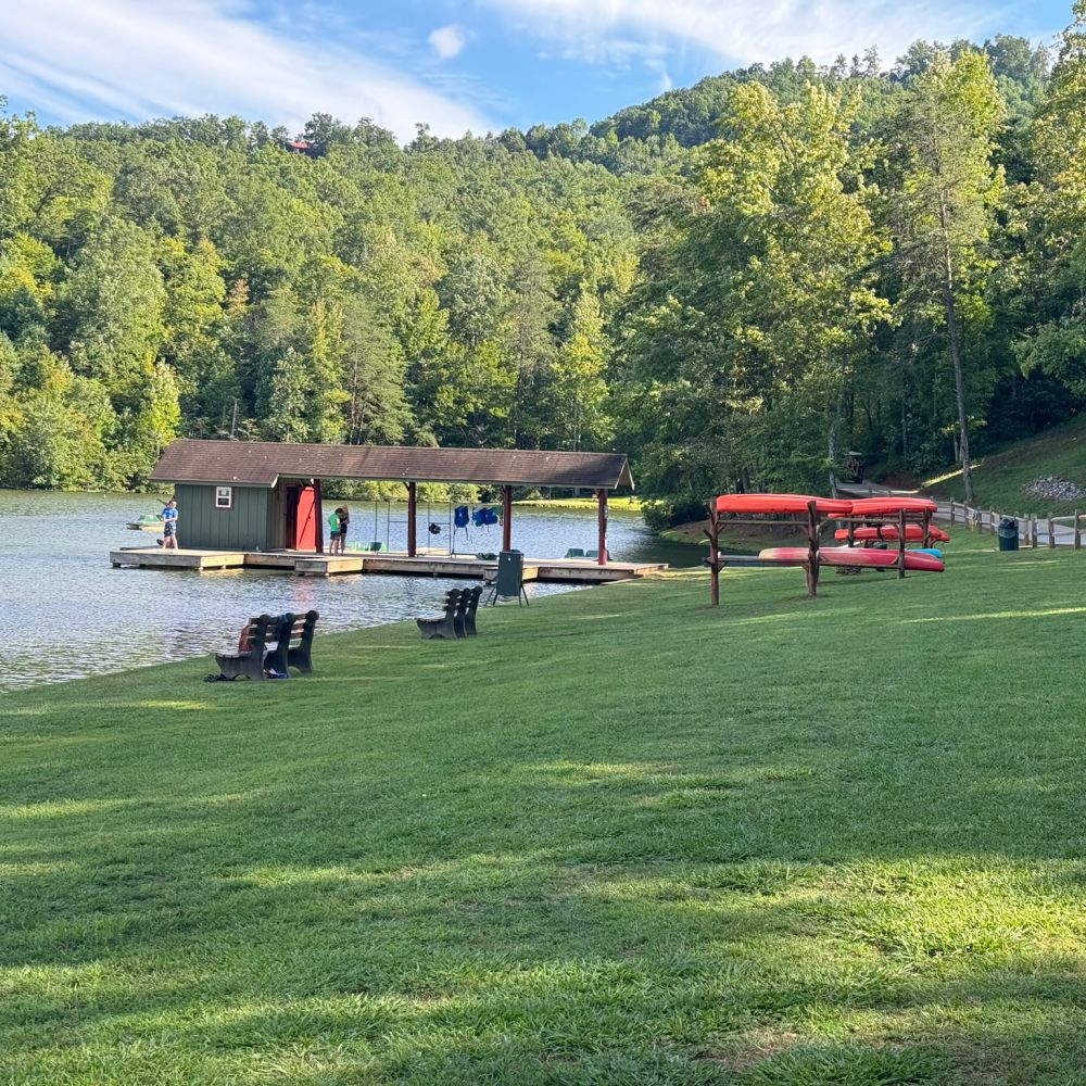 Enjoy canoeing around a large lake for fun or for fishing at the campground that is located near Asheville, NC.