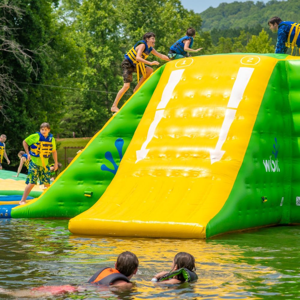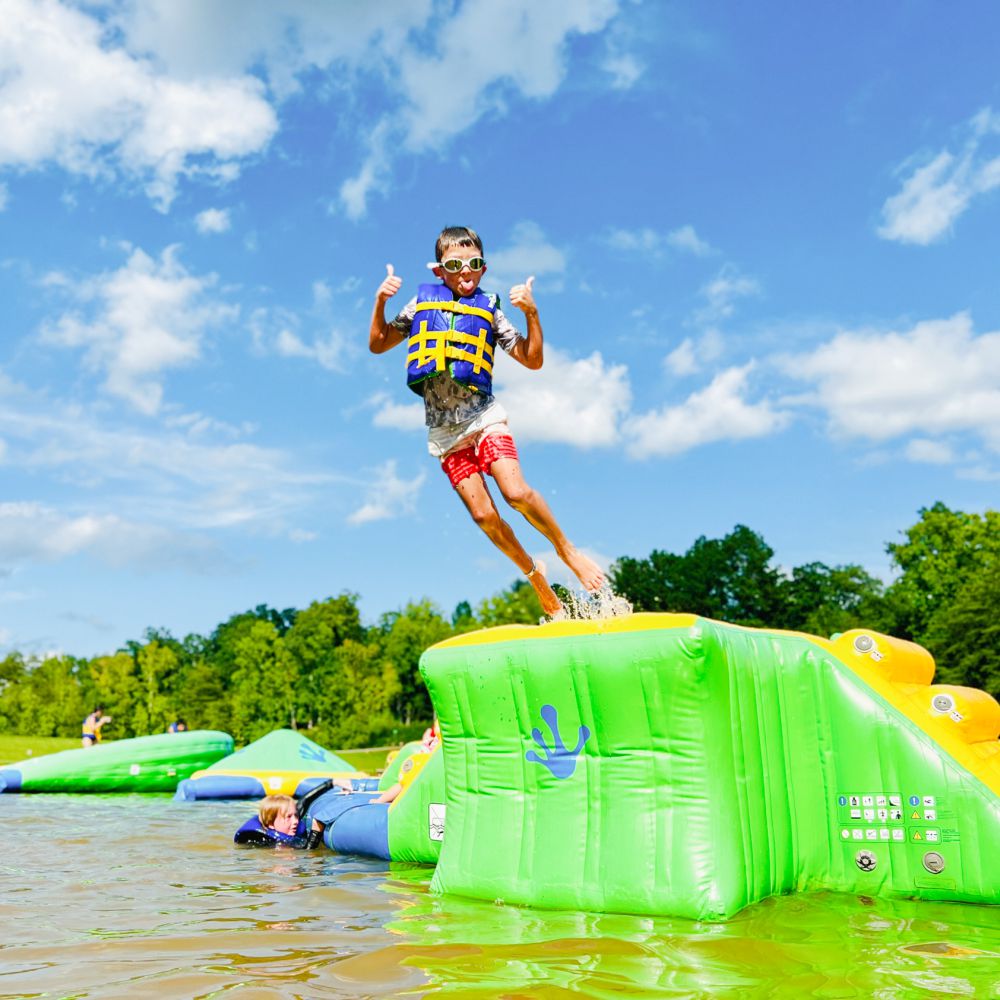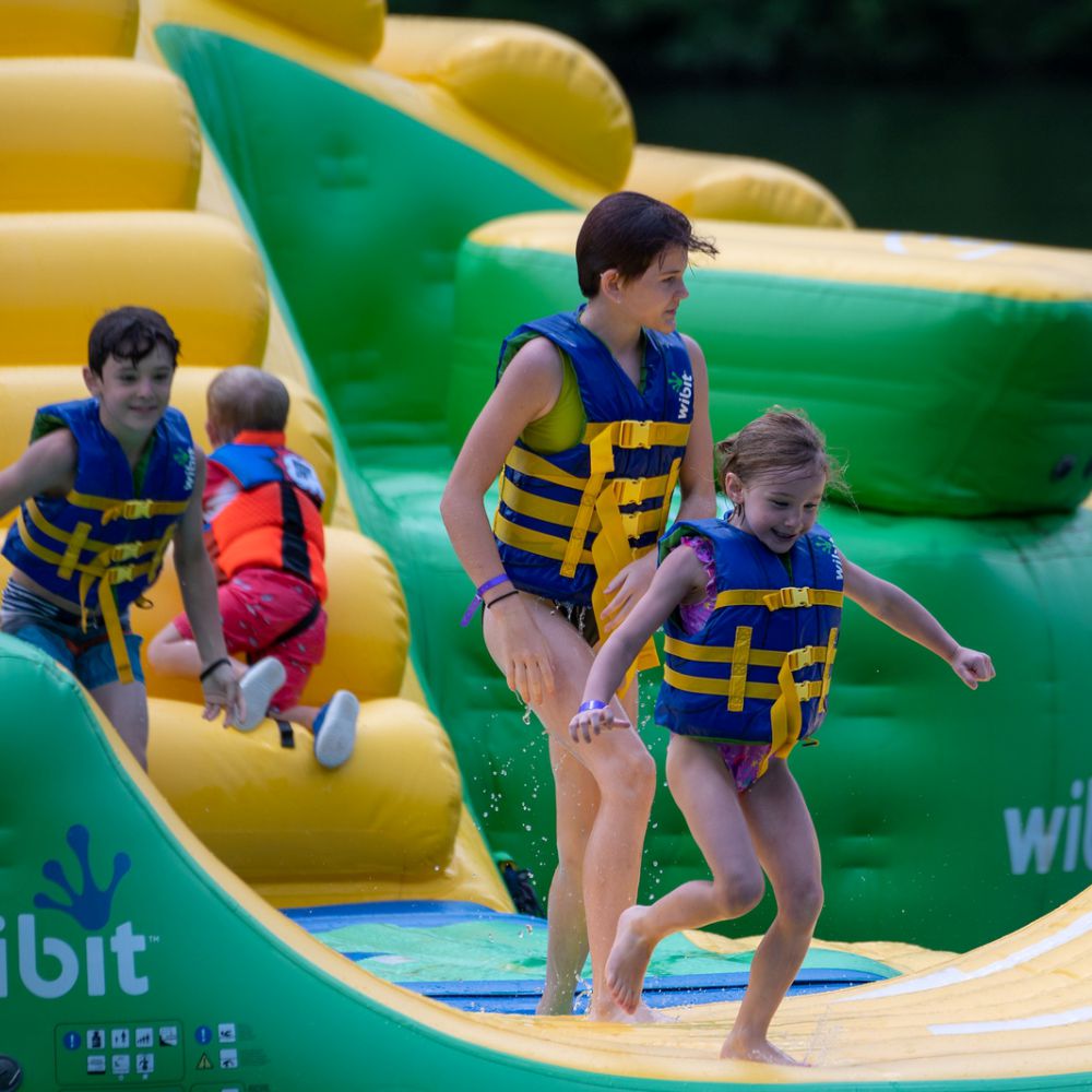 This attraction also doubles as a great way to cool off. Life jackets are provided at the lake (on a first-come, first-served basis), ensuring safety while participants enjoy the splash and bounce. Whether you’re sprinting across a wobbling beam or catching your breath between slides, the Wibit offers a dynamic, immersive adventure that balances excitement with safe, family-friendly fun.