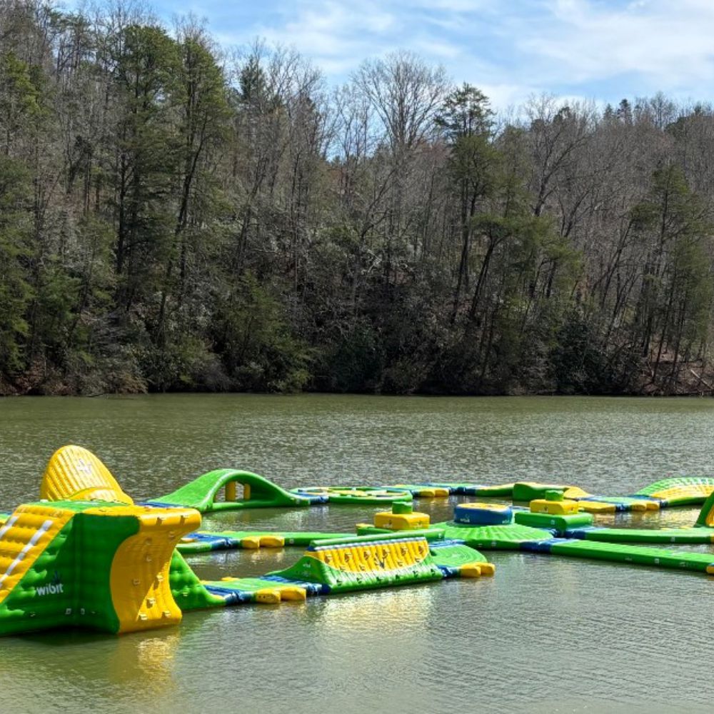 To enjoy the lake inflatable water park you must purchase park admission and after that the lake inflatable water park is included with your park pass. You can purchase passes just for the day to experience all the campground has to offer or you can stay for as long as you want at one of their many accommodations which include RV sites, tent sites, cabins, glamping tents, and more! Passes and reservations can be purchased online or at the location. It is recommended to purchase online prior to visiting to ensure availability.