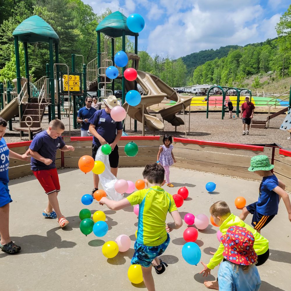 Enjoy full court outdoor basketball surrounded by woods and beautiful mountain scenery at Jellystone Park in Bostic, NC.