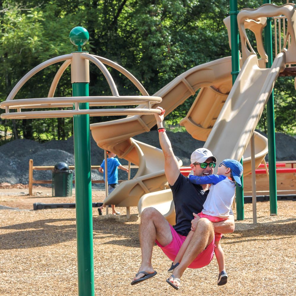 Families visiting Jellystone Park Golden Valley will find the playground nestled among the trees, offering a bright, welcoming area for kids to explore and expend energy. It’s a modern, well-maintained space that combines the nostalgia of classic play structures with fresh, durable design elements. Young campers can climb, slide, and run while parents enjoy a moment to relax nearby or join in the fun.