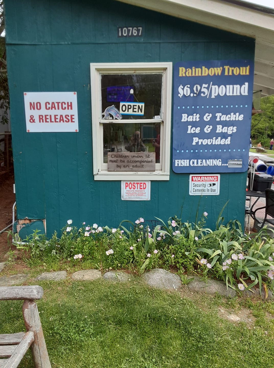 No entrance or fishing fee — you only pay for the trout you catch, priced by the pound. Currently priced at $7.95 per pound.