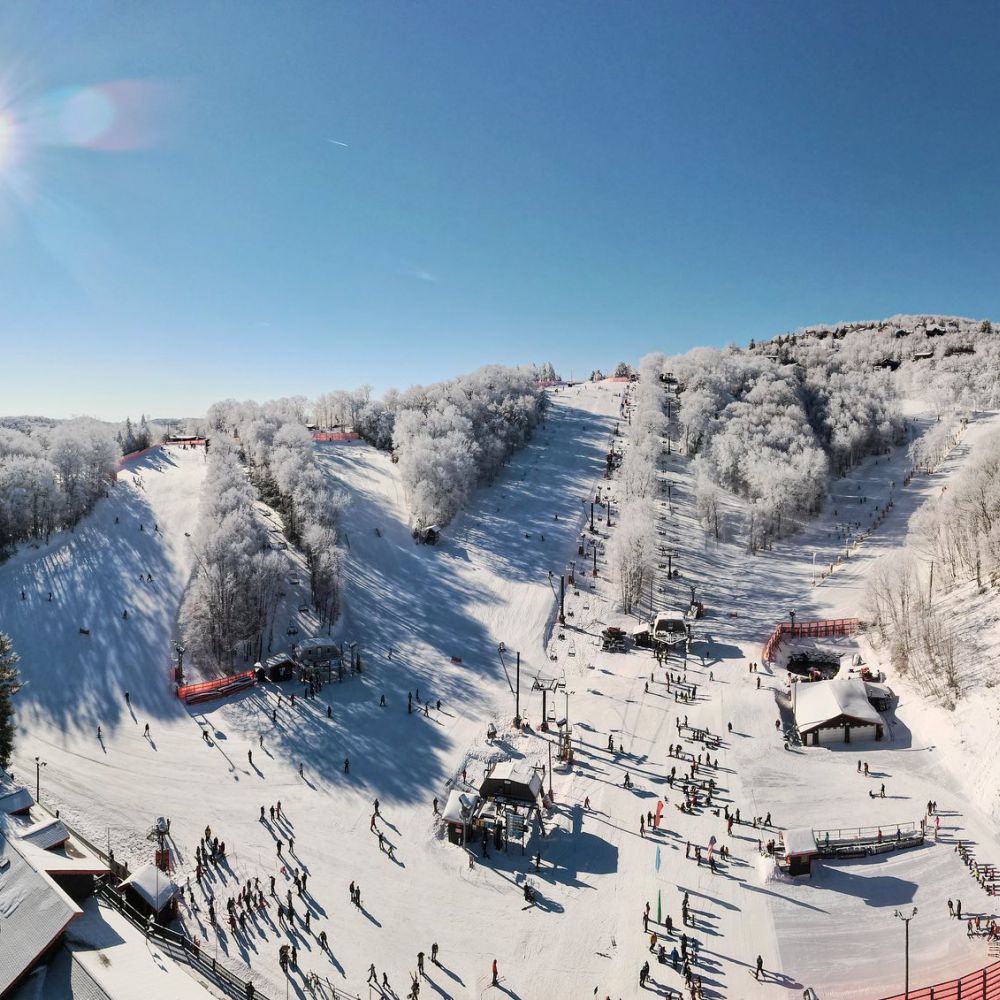 Perched at 5,506 feet—the highest town and ski area east of the Rockies—the resort benefits from cooler temperatures and consistently solid snowfall.