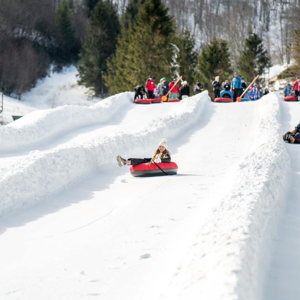 The resort’s dedicated tubing hill features 6–8 lanes, each stretching a generous 700 feet and flanked by high-powered snowmaking guns to ensure consistently slick, fast surfaces.