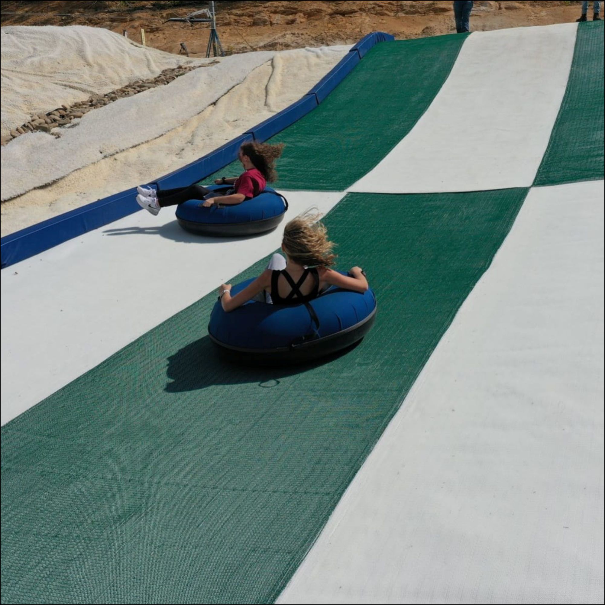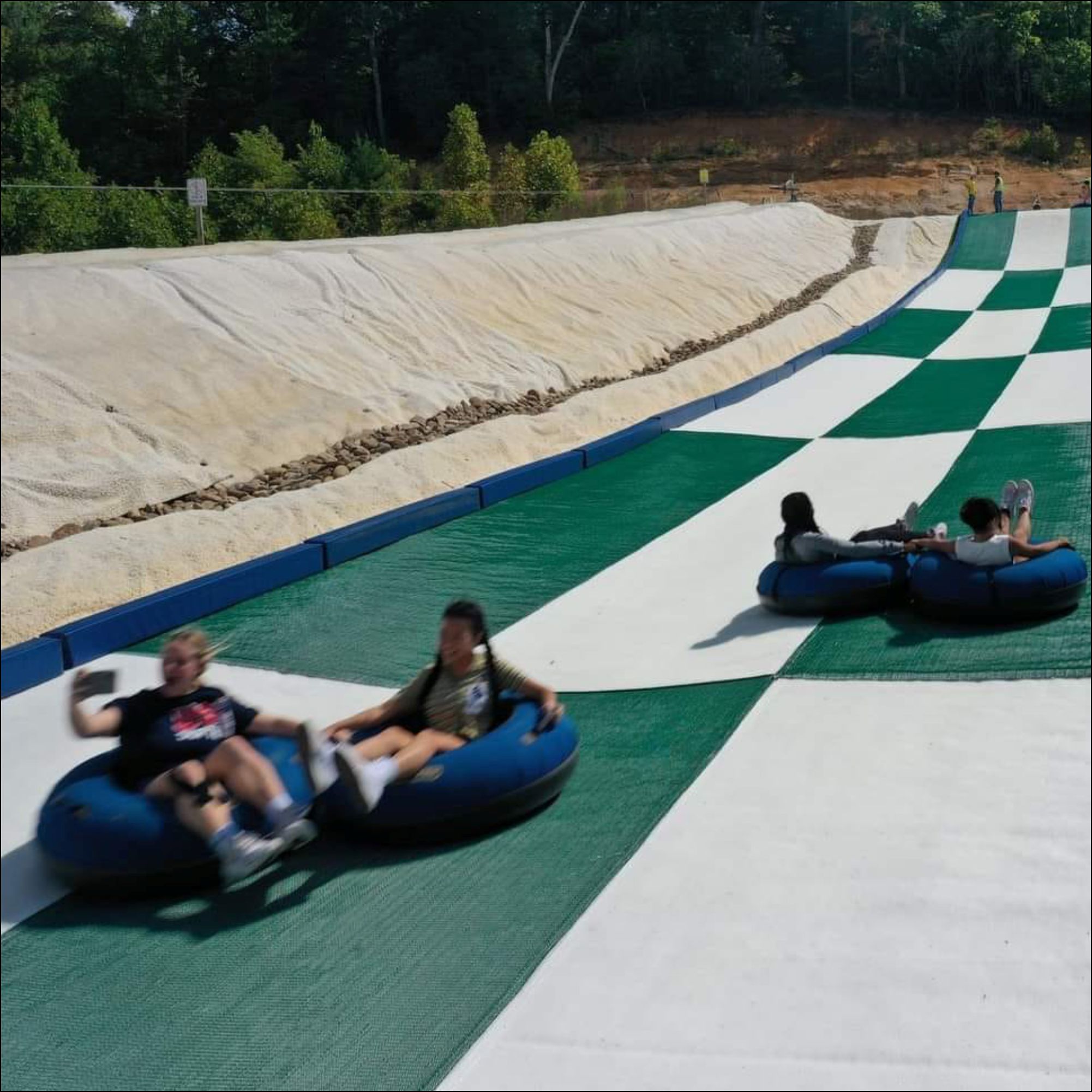 Black Bear Snow Tubing in Hendersonville offers a slick and satisfying twist on traditional winter tubing with its snowless, synthetic lanes. These high-tech tracks feature specially designed slick mats that simulate real snow conditions—meaning you get smooth, fast, and reliable rides even when temperatures don’t cooperate. The consistent glide stays cool under your tube, creating the exhilarating rush of snow tubing year‑round without needing snowfall or cold weather. It’s the same 600‑foot hill and heart-pumping 80‑foot drop, but crafted for any season.